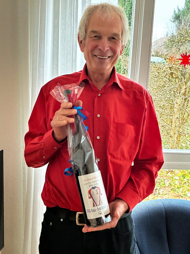 Am 15. Juli wurde Karl-Heinz Rupprecht 70. Jahre jung. Bei bester Gesundheit erreichte ich ihn zu Hause in Schallstadt und durfte ihm das obligatorische Fläschchen überreichen.