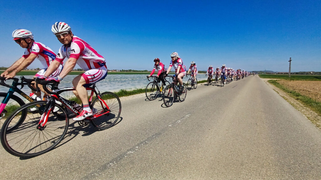 Bei durchgehendem Sonnenschein und frühlingshaften Temperaturen von über 20 Grad boten sich perfekte Bedingungen für unsere erste offizielle Ausfahrt. Auf dem Plan stand eine wunderschöne, flache Runde von knapp 70 Kilometern in Richtung Süden. Die flachen Kilometer waren ideal, um nach der Winterpause wieder gemeinsam in den Rhythmus zu finden, die Form zu testen und natürlich ausgiebig zu fachsimpeln.